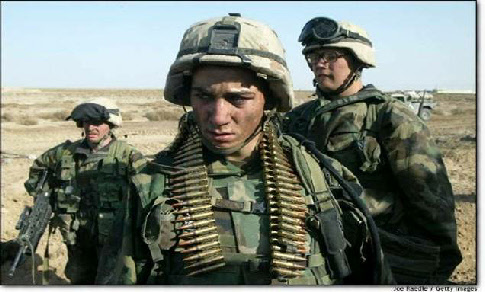 The average age of the military man is 19 years. He is a short haired, tight-